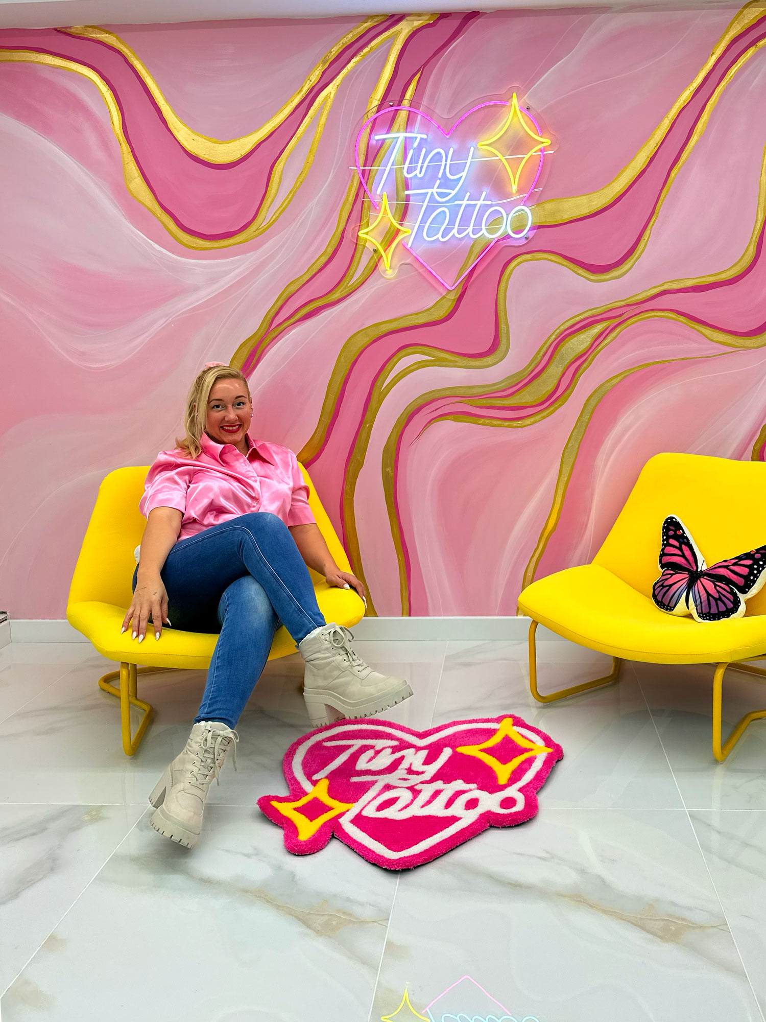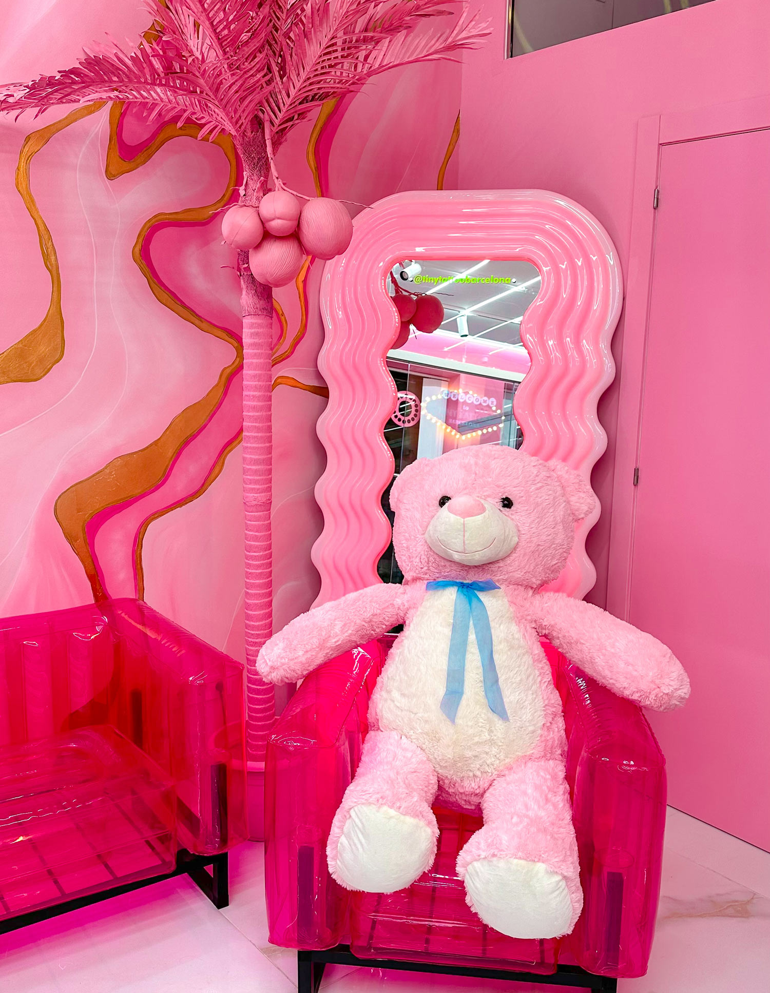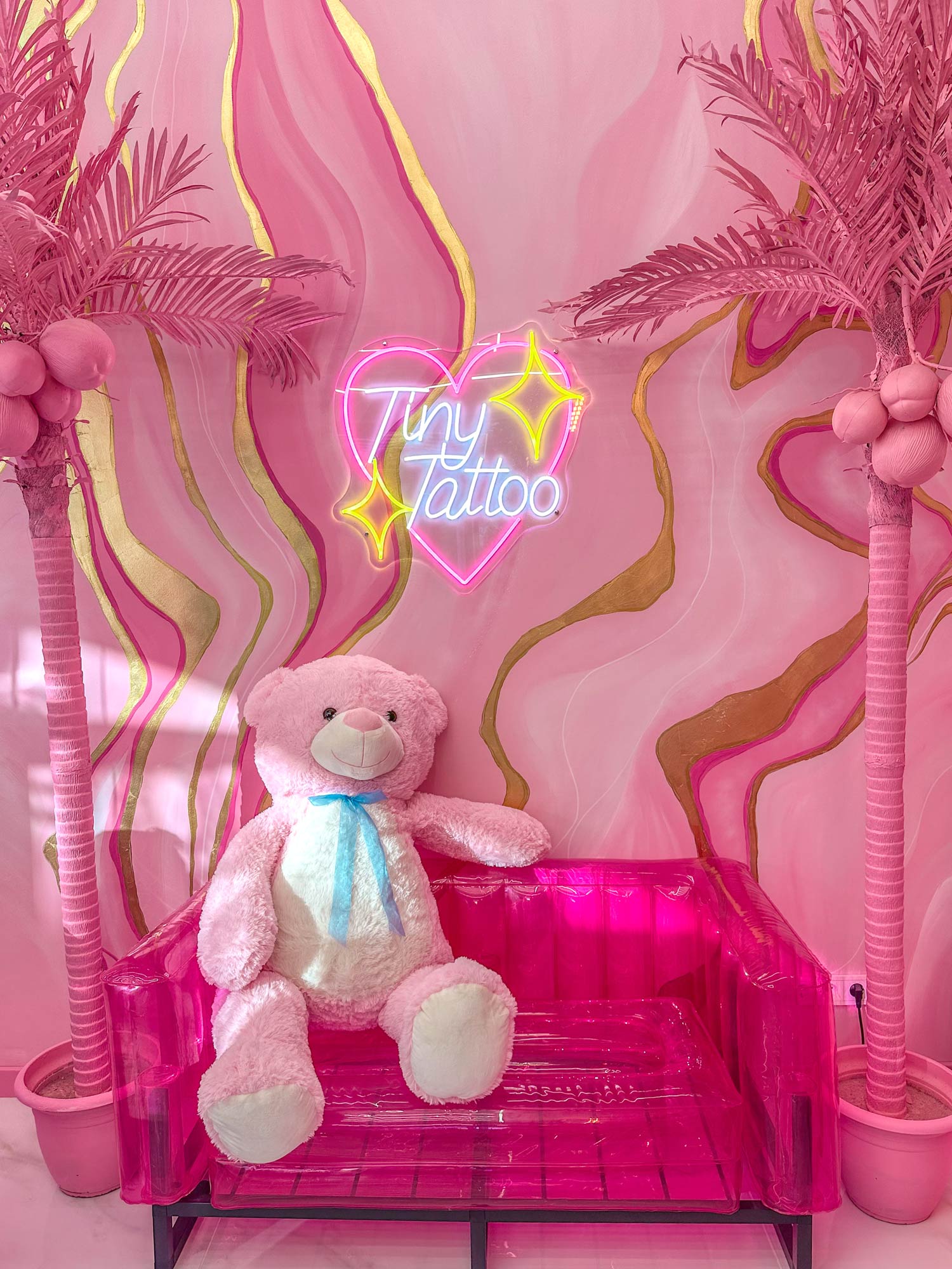 In the pedestrian heart of Granollers, a splash of pink contrasts with the modernist stone and invites you in. Retro arcade, micro-flash wall, and tufted armchairs set the mood, while our fine line artists bring your story to life—whether it’s a letter, an icon, or the silhouette of Montseny—with millimeter precision and hospital-grade sterilization. Walk-ins are welcome, or book online to secure your pink moment.